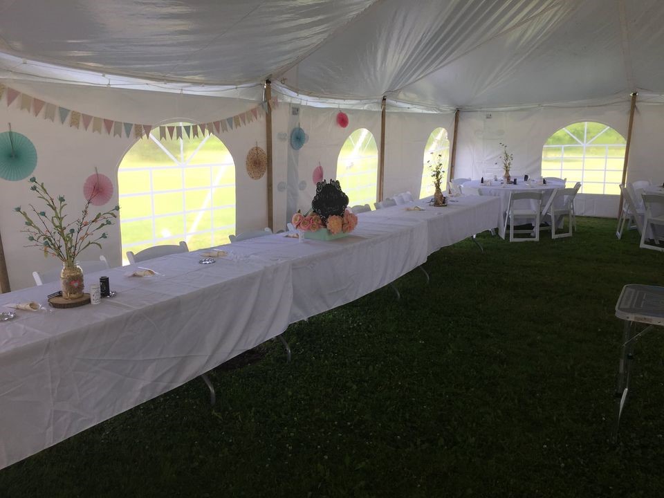 Our tents come in various sizes, from cozy setups for rehearsal dinners to expansive structures for weddings and large parties. Here’s a look at our available options: